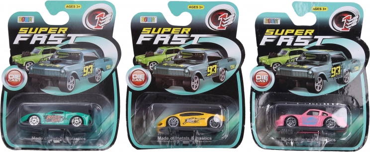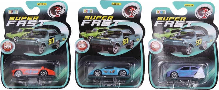 Metalbil i størrelsen 7,5 cm har friløbshjul og fås i seks forskellige farver til sjov leg.