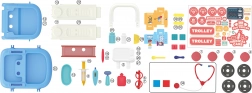 Indeholder forskellige medicinske redskaber, der lader børnene efterligne rigtige medicinske procedurer.
