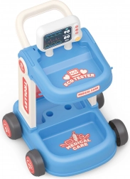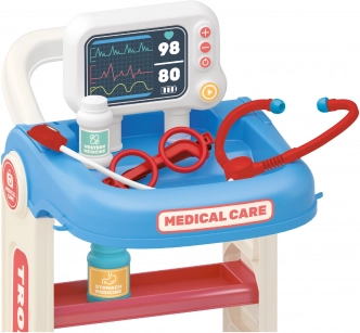 Medicinsk vogn med tilbehør giver små læger alt, hvad de har brug for til deres leg. Den er udstyret med hjul for nem mobilitet.