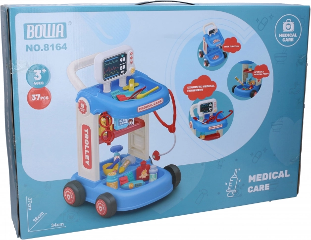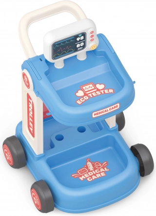 Denne medicinske vogn er perfekt til børn, der elsker at lege doktor og ønsker at hjælpe deres patienter. Hjulene giver nem bevægelse fra rum til rum, hvilket bidrager til en realistisk legeoplevelse.