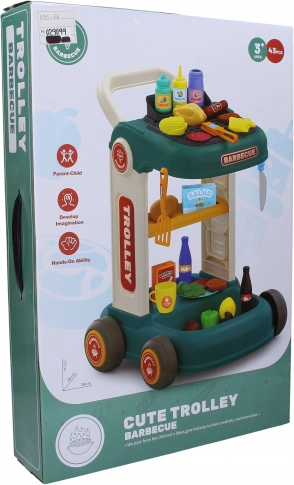 Kompakt grillvogn med rigt tilbehør til små kokke og havefestens lege. Pakken indeholder vogn med hjul, madvarer, service og grilltilbehør. Ideel til rolleleg med madlavning, udvikling af fantasi og fælles sjov.
