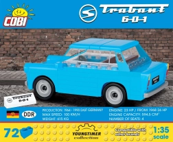 Trabant 601 er en af de mest kendte biler i Østeuropa. COBI-byggesættet i skala 1:35 gengiver præcist dens typiske linjer og muliggør små justeringer og modifikationer. Modellen ser fantastisk ud på hylden og byder samtidig på sjov bygning for både børn og voksne.