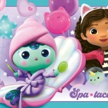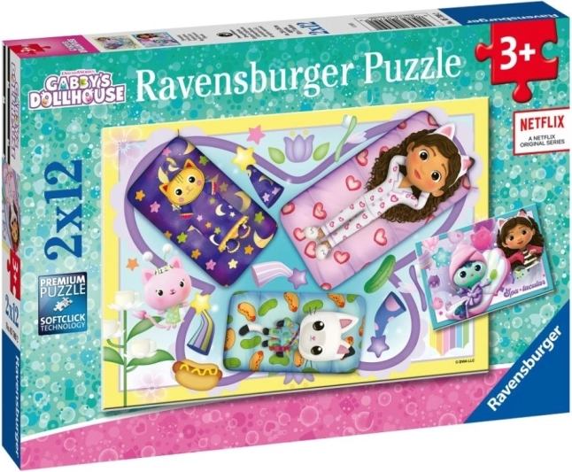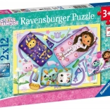 Puslespil 2x12 Kattes Gabys Hus fra Ravensburger indeholder to puslespil, hver med 12 brikker, ideelt til de mindste eventyrfans. Målene for hvert billede er 26 x 18 cm.