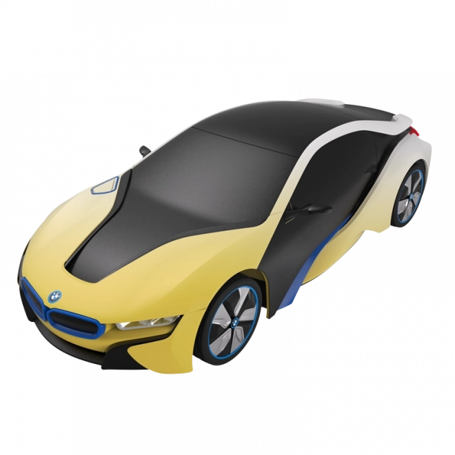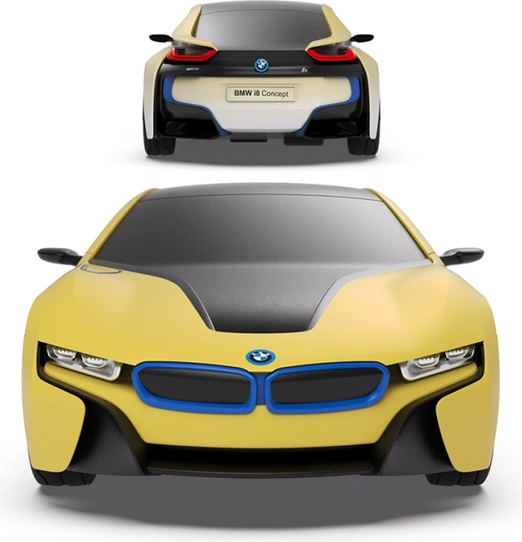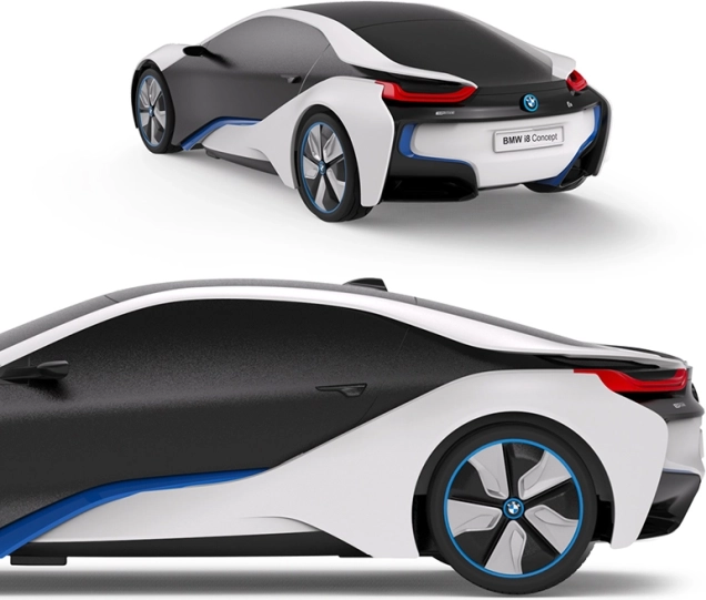 RASTAR fjernstyret BMW i8 er en futuristisk bil med en unik lakering, der skifter farve fra hvid til gul ved brug af sollys eller LED‑lys. Denne licenserede BMW kombinerer den nyeste teknologi med troværdigt gengivne detaljer fra den ægte bil.