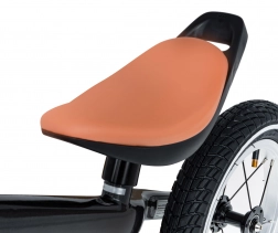 Ergonomisk sæde i økologisk læder og gummihåndtag sikrer en komfortabel og sikker brug for børn.