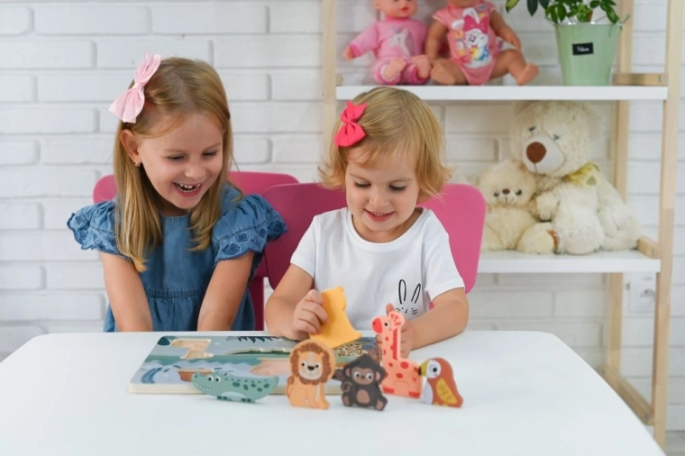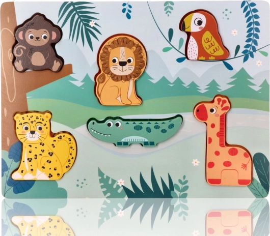 Træ 3D-puslespil Safari Dyr er det ideelle legetøj til børn fra 12 måneder. Det hjælper med at udvikle kognitive færdigheder ved, at børn samler forskellige dyreformer i de tilsvarende udskæringer.