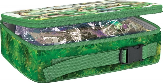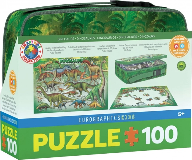 Opdag et sjovt puslespil med dinosaurmotiver i en unik gaveindpakning – en termomadkasse med lynlås. Puslespillet med 100 brikker giver skaberglæde og måler færdigsamlet ca. 48 × 33 cm. Sættet indeholder en separat motivskabelon og en praktisk isotermisk boks på 26 × 21 × 7,7 cm, ideel som en stilfuld gave.