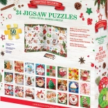 Denne julekalender fra EUROGRAPHICS bringer glæde til hver decemberdag. I de 24 vinduer finder du 24 forskellige puslespil, hver med 50 brikker og et smukt julemotiv. Billederne er kvadratiske og måler efter samling ca. 12,5 × 12,5 cm. I hvert vindue er der også en skabelon for nemmere lægning, og på bagsiden af pakken finder du et overblik over alle motiver.
