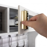 Hvidt design med gyldne detaljer, metal-look betjeningsgreb og robust MDF-konstruktion sikrer stabilitet, sikkerhed og lang levetid.