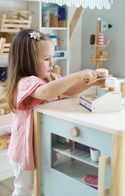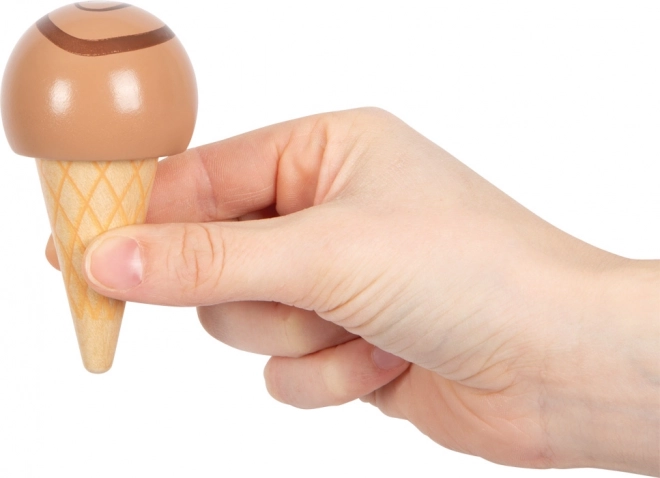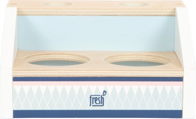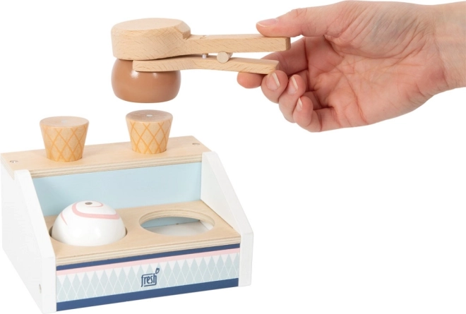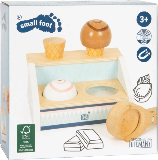 Den træ-iskiosk SMALL FOOT Fresh bringer perfekt sød underholdning til legekøkkenet. To rum, kræmmerhuse og iskugler holder let sammen takket være magneterne, så børn kan servere is som i en rigtig isbod. Den magnetiske isske gør det muligt med et enkelt tryk at “lægge” kuglen på kræmmerhuset – enkelt, sjovt og meget effektfuldt.