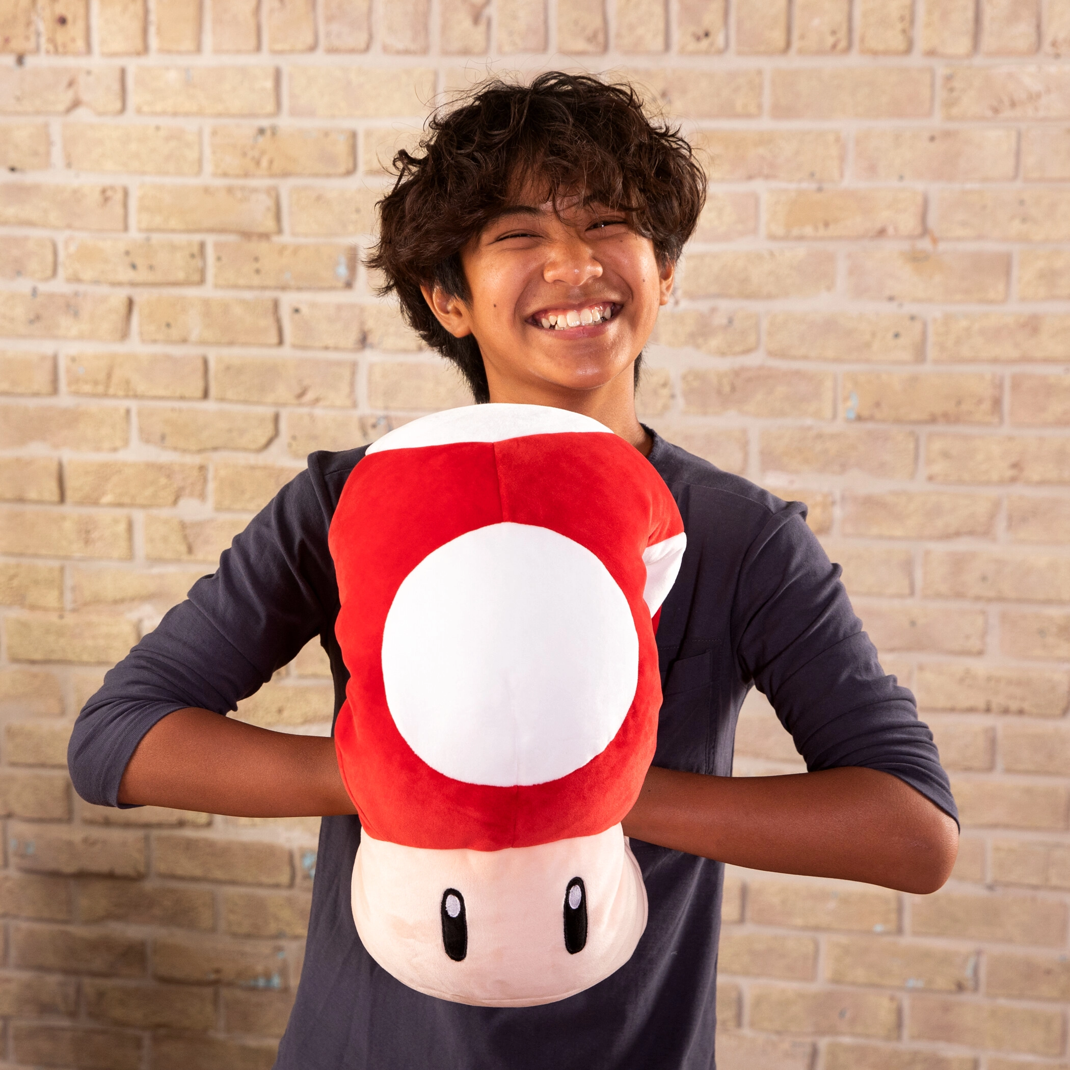 Dyk ned i Super Mario-universet med Mocchi Mocchi plysbamse-svampen i størrelsen 34 × 31 cm. Den udmærker sig ved en usædvanligt blød, fløjlsagtig overflade og en fyldig polstring, som gør den perfekt til kram, afslapning og leg. Det markante design med rød hat og hvide prikker genkendes straks af alle fans.