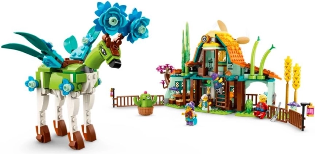 Sættets midtpunkt er en stor mytisk hjort med fuldt bevægeligt hoved og ben, som kan bygges på to måder: pynt den som en flyvende pegasus eller forvandl den til en skovvogter. Imponerende detaljer som udskiftelige gevirer til blomster forstærker den fantasifulde leg. Et rigt udvalg af minifigurer – Izzie, Zoey, Cooper og fru Castillo – suppleres af Z-Blob og to drømmevæsner.