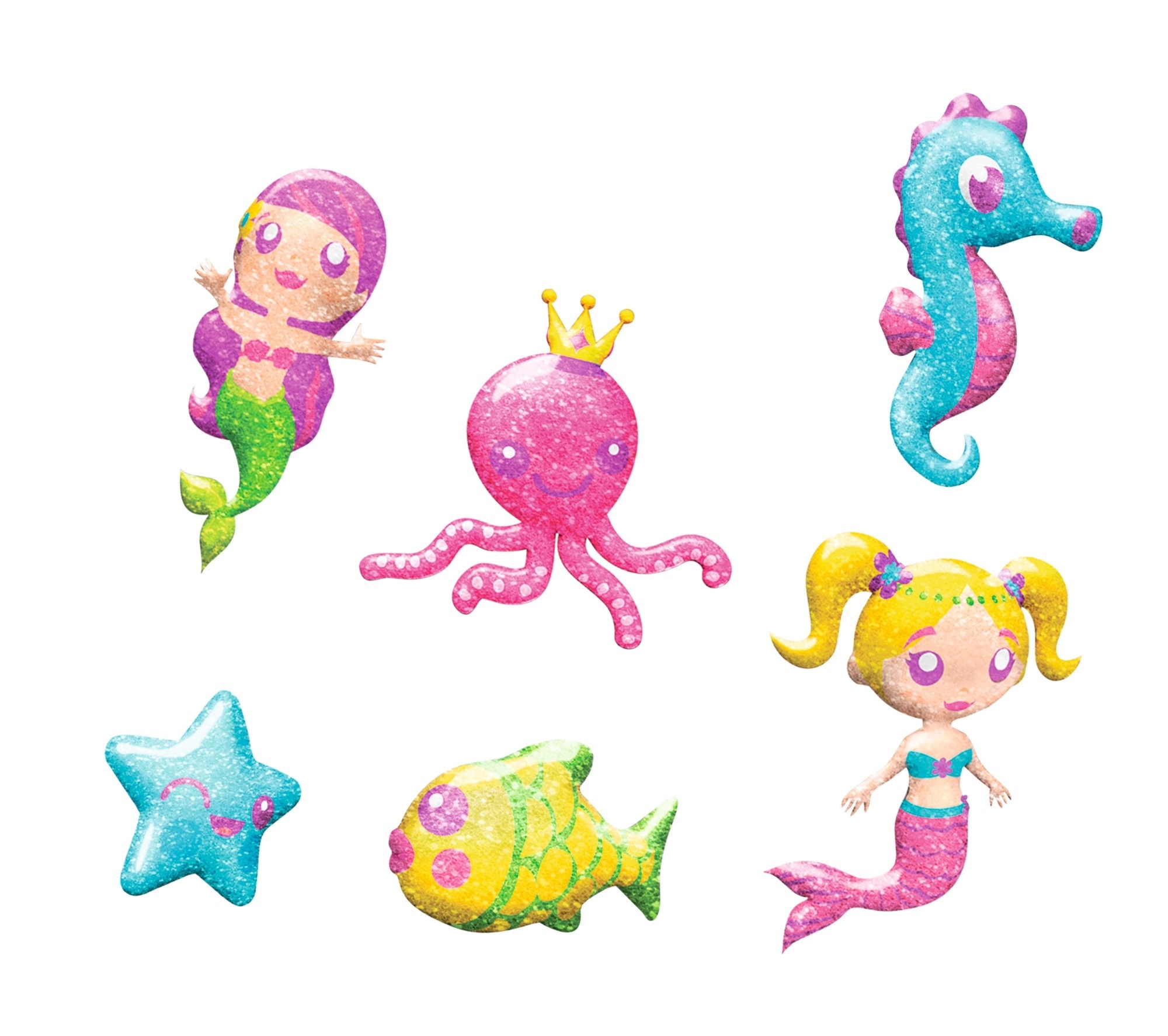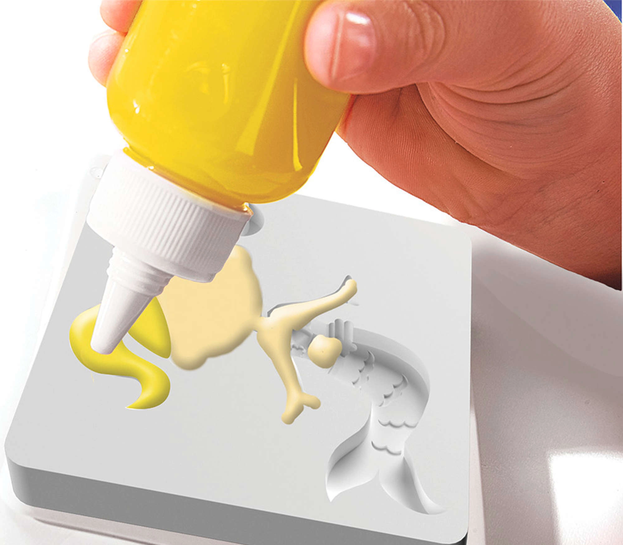 Applikationsflasker med smal tud gør det nemt at farvelægge selv små detaljer. Glimmer giver havfruefigurerne en charmerende glans.
