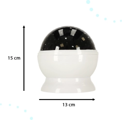 Natprojektoren forvandler værelset til et hyggeligt planetarium. Den farvede projektion af stjerner og måne skaber tryghed, hjælper børn med at falde i søvn og fungerer samtidig som en smuk interiørdekoration. Takket være den enkle betjening med tre knapper vælger du hurtigt din favorittilstand og kuplens rotation.