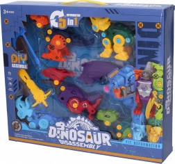 Skruemaskinesættet med dinosaurer 5-i-1 giver børn timevis af skabende leg. Hver af de fem dinosaurer kan samles separat ved hjælp af enkle skruekomponenter og derefter samles til én transformerende robot med affyrbar skydevåben-funktion. Legetøjet styrker tålmodighed, koncentration og udvikling af teknisk tænkning.