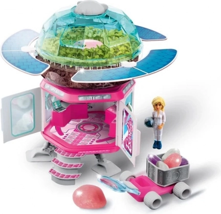 Dette inspirerende videnskabssæt tager børn med ind i en verden af kosmiske opdagelser. De bygger en specialstation til eksperimenter med planter og jordprøver, samler en mini-rover til udforskning af ukendte planeter og pynter modellerne med klistermærker. Der medfølger også en lille Barbie-astronaut, som ledsager børnene på deres opdagelsesrejser.
