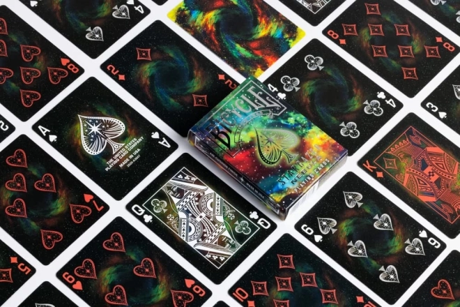 Træd ind i stjernernes verden med BICYCLE Stargazer Nebula-kort. Du vil blive betaget af de vibrerende galaktiske motiver, som stråler på æsken med refleksfolie, samt det præcise håndværk fra The U.S. Playing Card Company. Takket være Air Cushion-overfladen glider kortene let mellem fingrene, er nemme at dele ud og tåler intensiv brug i både spil og magiske rutiner.