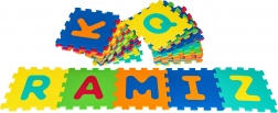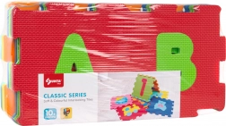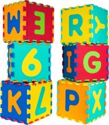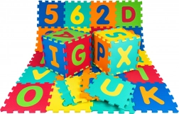 Farverigt sæt med 36 bløde EVA-skumbrikker med udtagelige bogstaver og tal, ideelt til børn fra 10 måneder. Skab en sikker gulvmåtte eller rumlige former, mens børn leger og lærer. Brikkerne er bløde, vandtætte, har en skridsikker struktur og er lette at rengøre med en fugtig klud. Måtten isolerer mod kulde fra gulvet og dæmper stød for komfortabel og sikker leg.