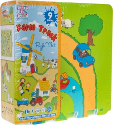 Farverig børnemåtte af 9 skum-puslespilsbrikker med gårdtema er ideel til børn fra 10 måneder. Den er blød, vandtæt og nem at rengøre – det er nok at tørre den af med en fugtig klud. Giver termisk isolering, dæmper stød og udvikler samtidig fantasi og motorik ved leg med figurer.
