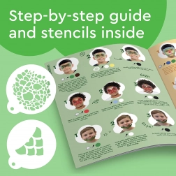 Pynt ansigt og krop med farver! Sjov underholdning for dig og dine venner. Takket være de specielle hudvenlige farver og skabeloner kan du male ornamenter i ansigtet eller for eksempel et overskæg og en lille skægstub. Fordele: - enkel - sikker - ikke‑giftig - let at fjerne Pakkeindhold 13 stk.: otte forskellige farver à 2 ml, svamp, pensel, skabeloner og billedvejledning. Med farverne kan du male op til 40 ansigter. Brugsanvisning: Vær kreativ med nogle af vores enkle vejledninger og skabeloner, eller skab dine egne idéer! Fugt svampen og/eller penslen med lidt vand. Påfør lidt farve. Når dit barn er færdigt med eventyret, er det nok at vaske af med vand og sæbe. Bruges under opsyn af en voksen. Advarsel: Produktet kan forårsage en allergisk reaktion. Test farven først på et lille stykke hud. Ikke egnet til børn under 3 år.