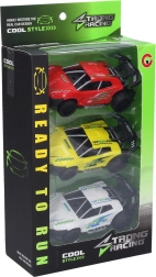 Denne trio af biler giver enkel og fængende leg – træk dem blot tilbage og slip. Det robuste design og de behagelige mål sikrer et godt greb selv for mindre børn, mens de livlige farver og den detaljerede udførelse stimulerer fantasien og udvikler finmotorikken.