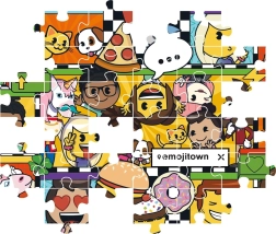 En farverig scene med populære emoji-figurer motiverer til at lægge puslespil og underholder i timevis.