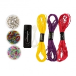 Lav dine egne originale armbånd, halskæder og vedhæng med dette komplette kreative smykkesæt. Det indeholder klokker, elastisk snor, farvede broderigarn, perler i forskellige former, sammenføjningsringe og en nål – alt, hvad du behøver til hurtig og sjov kreation. En perfekt gave til små skabere fra 6 år.