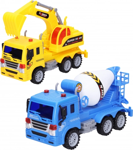 Bygge biler 23 cm med gravemaskine, betonblander og trafikskilte. Velegnet til alle små bygmestre.