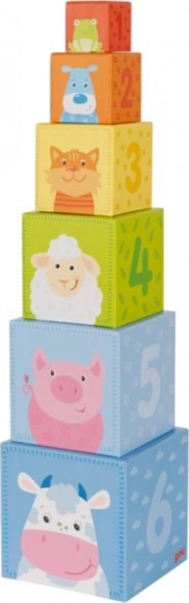 Dette stabeltårn med 6 kvalitetsklodser i pap giver de små glæden ved at udforske. De farverige dyreillustrationer stimulerer fantasi og læring, mens den robuste udførelse sikrer lang holdbarhed. Tårnet kan let pakkes sammen og opbevares, så det er ideelt også på farten.