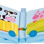 Denne bomulds knitre-bog med pivelyd giver de mindste en blid multisensorisk oplevelse. Den knitrende folie og pivelyden stimulerer hørelse og berøring, mens kontrastfulde og farverige billeder med togmotiv styrker synet og den første forståelse af små fortællinger.