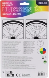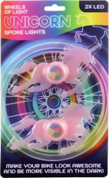 Øg din synlighed og tilføj et strejf af magi til dine cykelture med disse stilfulde LED cykellys med enhjørninge-motiv. Pakken indeholder to lyselementer, som nemt fastgøres til din cykels eger.