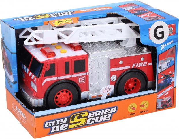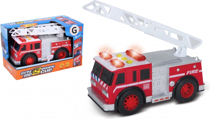 En realistisk brandbil til små redningsfolk, der giver masser af sjov takket være lys- og lydeffekter, en udtrækkelig stige og friløbshjul for jævn kørsel. De kompakte mål 18×8×10 cm passer perfekt i børnehænder.