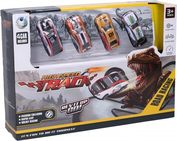Oplev en spændende tur med affyringsbanen i dinosaur-tema. Børn vil elske de hurtige starter og løb takket være den mekaniske affyring, som giver legen dynamik. Sættet indeholder 4 små metalbiler, så det er ideelt til både solo-leg og sjov med venner.