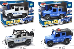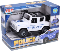 Den skrue-samle politijeep er et ideelt legetøj til børn, der elsker biler og at bygge. Med det medfølgende værktøj kan de små mekanikere let skille køretøjet ad og samle det igen, hvilket træner fingerfærdighed og logisk tænkning. Friløbshjul sikrer en jævn bevægelse under leg.