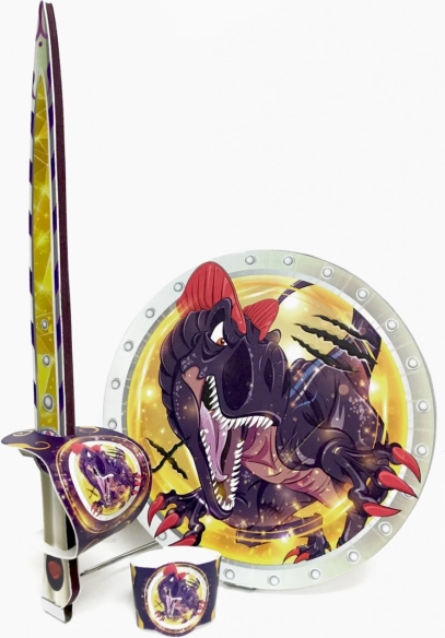 Sjovt sæt til små krigere: skumsværd og skjold med D‑Rex‑motiv giver sikker, actionfyldt leg uden risiko for skader. Ideelt som tilbehør til karnevalskostume, til børnefødselsdage og hjemlige eventyr.
