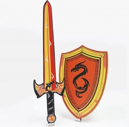 Dette sæt til børn indeholder et skumsværd og et skjold med et attraktivt dragemotiv. Den lette skumkonstruktion fremmer sikker leg uden risiko for skader og er velegnet til børn, der elsker ridderlige eventyr, samurailege og udklædningssjov.