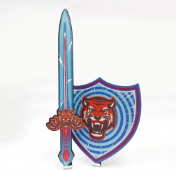 Forvandl børns fantasi til eventyr med dette legesyge sæt af sværd og skjold. Takket være det bløde skum er sættet ekstra sikkert, så børn kan gå fuldt ind i lege som riddere eller samuraier. Det markante tigermotiv giver ethvert kostume et effektfuldt look.
