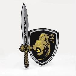 Dette sæt indeholder et skumsværd og et skjold med løvemotiv, som er designet til sikker børneleg. Det bløde skummateriale minimerer risikoen for skader, mens det attraktive design stimulerer fantasien og eventyrlige fortællinger.
