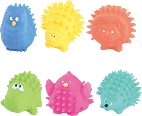 Disse bløde dyr med pigge er fantastiske til sanseleg og finmotorik. Takket være det elastiske materiale er de behagelige at klemme på, deres teksturerede overflade giver rig taktil stimulering, og de farverige designs indbyder til udforskning. De passer til hjemmet, børnehaven og på tur.