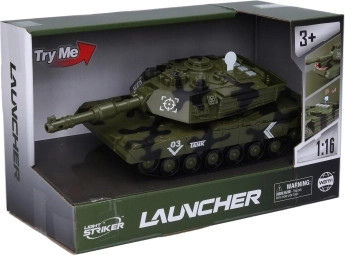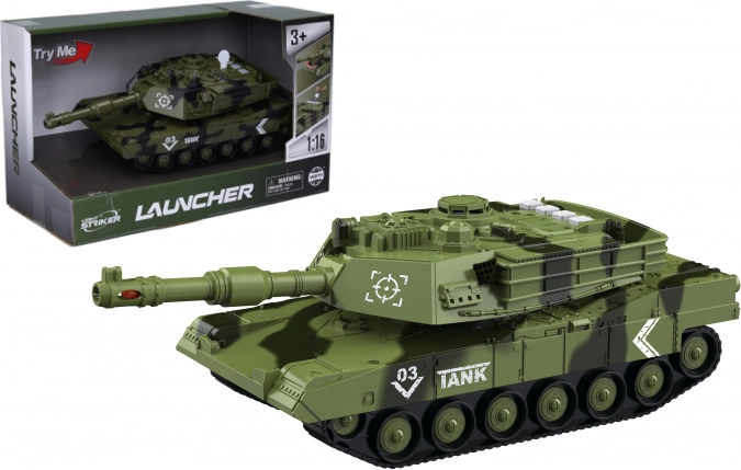 Gå i aktion med en realistisk træktank, der efter et skub kører fremad takket være træk-op-drevet. Ved at trykke på knapperne aktiverer du lys- og lydeffekter, som giver legen spænding og slagmarkstemning.