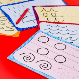 I sættet medfølger 18 tavler, som man kan skrive og tegne på ved hjælp af den unikke ergonomiske pen, der er inkluderet i pakken.