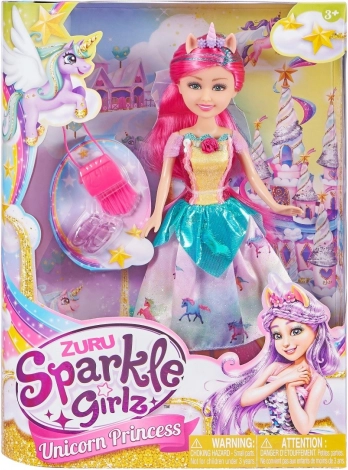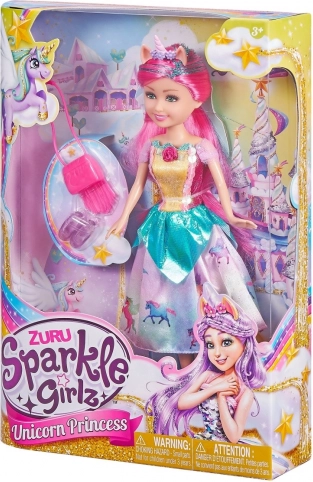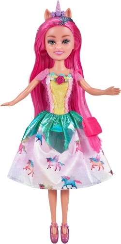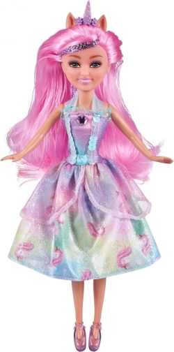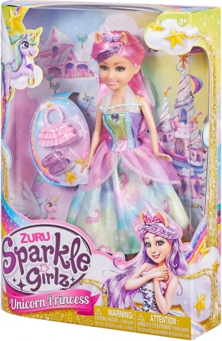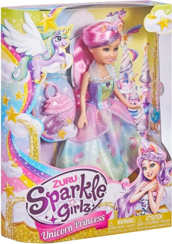 Dukken SPARKLE GIRLZ Enhjørningeprinsesse bringer eventyret ind i børnenes hænder. Med glitrende kjole med enhjørningemotiver, iøjnefaldende farver og langt hår er den som skabt til historiefortælling, prinsesseleg og magiske eventyr. Ideel til små elskere af fantasi og modetilbehør.