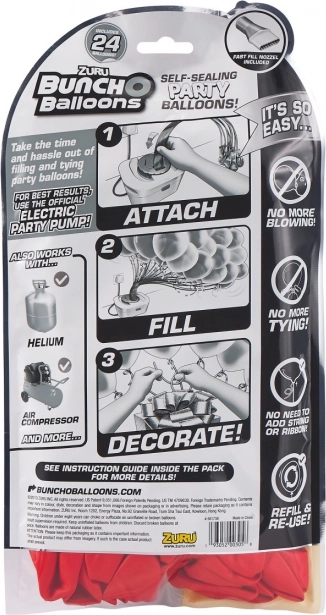 Gør forberedelsen af festen nemmere med selvforseglende festballoner ZURU Bunch O Balloons. Takket være hurtig oppustning og knudefri teknologi kan du pynte rummet på ingen tid – tilslut, fyld og dekorer. Kompatibel med helium og luftkompressor og ideel til fødselsdage, bryllupper og børnefester.