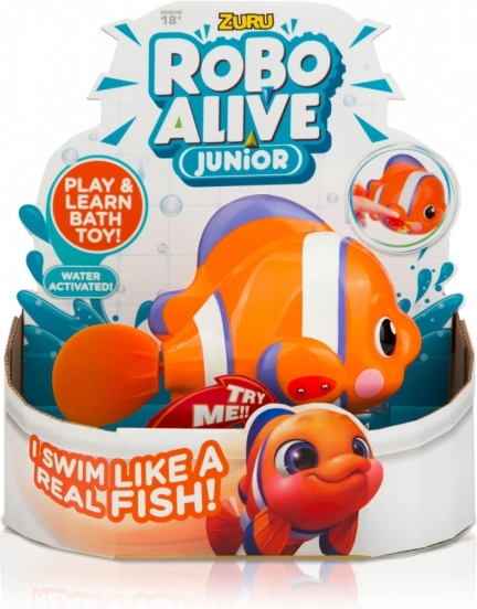 Robo Alive Junior fra ZURU gør hvert bad til et sjovt eventyr. Anden vrikker sødt på land og svømmer i vandet, den lille krokodille skyder rask frem, og fisken fremkalder smil for hvert svømmetag. Med den enkle betjening via On/Off/TRY ME-knappen på halen kan selv mindre børn være med.