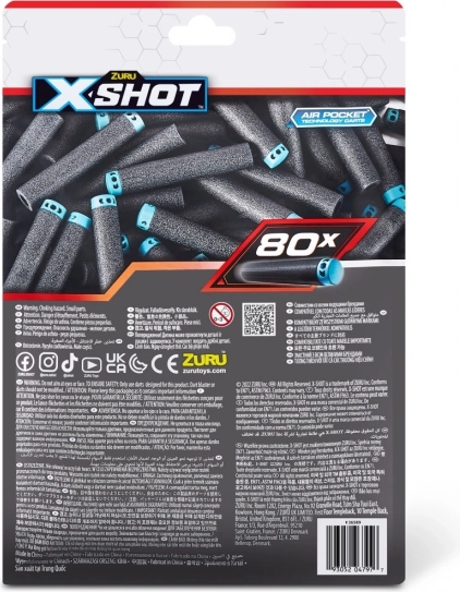 Fyld lageret op med en pakke med 80 X-Shot Excel reserveskumprojektiler med Air Pocket Technology for længere rækkevidde, højere hastighed og bedre præcision. Pile er kompatible med de fleste blastere fra førende mærker og leveres i en genlukkelig pose for nem opbevaring efter kampen.