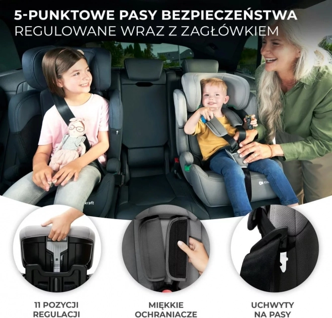 Dette er autostolen COMFORT UP i-Size - en autostol til børn fra 76 til 150 cm i højden, som opfylder den nyeste standard R129 i-Size. Ved at købe denne stol kan du være sikker på, at dit barn vil være tilstrækkeligt beskyttet fra cirka 15 måneder til 12 år! Det er en universel autostol - den er også egnet til biler uden ISOFIX-system. Takket være den samtidige justering af nakkestøtte og sikkerhedsseler (11 positioner) kan du nemt tilpasse den til dit voksende barn. Små passagerer vil blive mødt af et bredt, dybt sæde og en aftagelig modulær indsats til mindre børn. Sædet er udstyret med en 5-punkts sikkerhedssele med blød polstring, som du nemt kan opbevare, når det er tid til at spænde barnet fast med en 3-punkts sikkerhedssele. Autostolen COMFORT UP i-Size vil følge dig i yderligere 12 år!