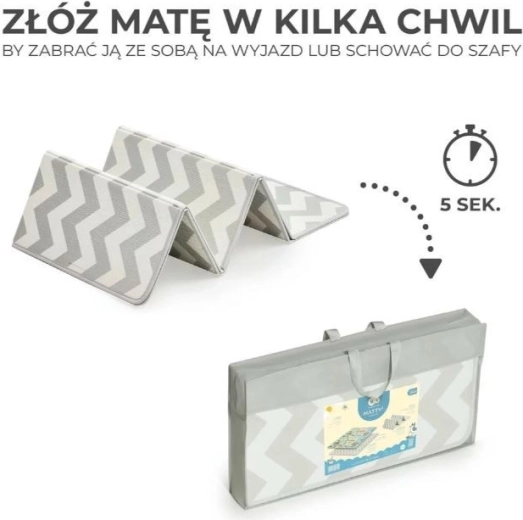 Det tager kun 5 sekunder at folde MATTY 2 sammen. Du behøver ikke rulle det til en upraktisk stor rulle – det tager kun et øjeblik at folde underlaget og gøre det klar til turen, når du lægger det i den medfølgende bæretaske.
