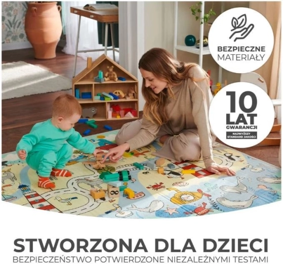 Skumunderlaget MATTY 2 er fremstillet af børnesikre materialer. De er testet og certificeret, så barnet kan bruge underlaget selv kun iført ble.