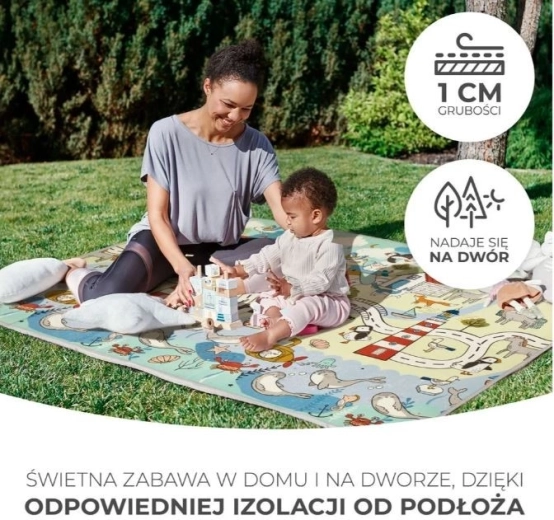 Det dobbeltsidede skumunderlag MATTY 2 er det ideelle sted til at rulle, lære at kravle og tage de første skridt. Det er også meget tykt og giver fremragende isolering fra gulvet – uanset om det er koldt klinkegulv eller græs udenfor.