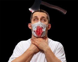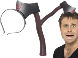 To ender af “øksen” fastgjort til hårbøjlen skaber en overraskende realistisk effekt uden en dråbe blod. Ideel til et horror-look, der vækker opsigt.